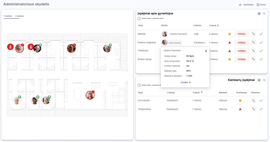 Assisted Living sprendimai suteikia galimybę sekti gyventojų būklę, buvimo vietą (beacon + gateway algoritmai) ir padidinti jų saugumą.