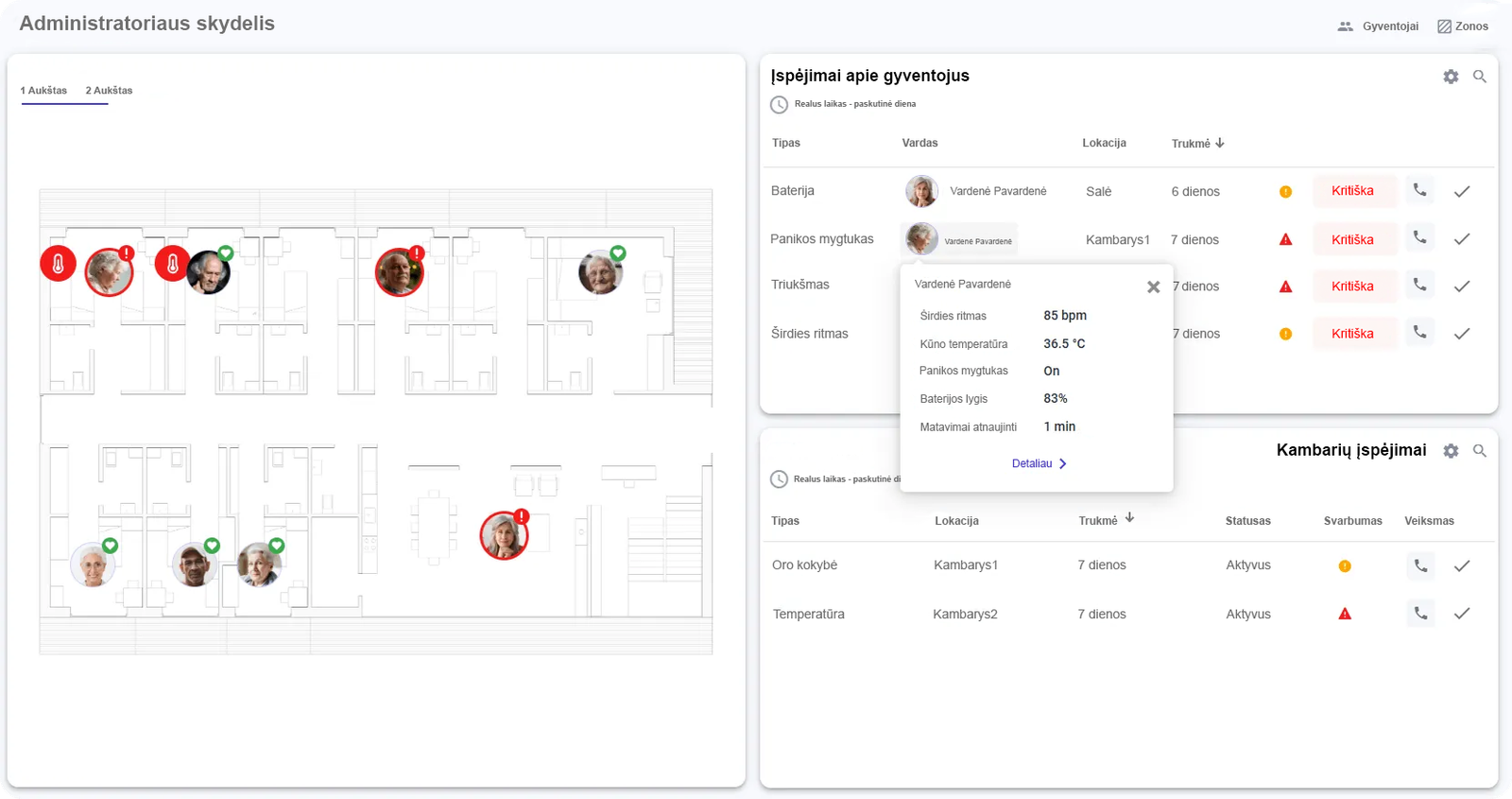 Taisyklės leidžia kurti aliarmus, kurie realiu laiku informuoja personalą apie kritines situacijas.